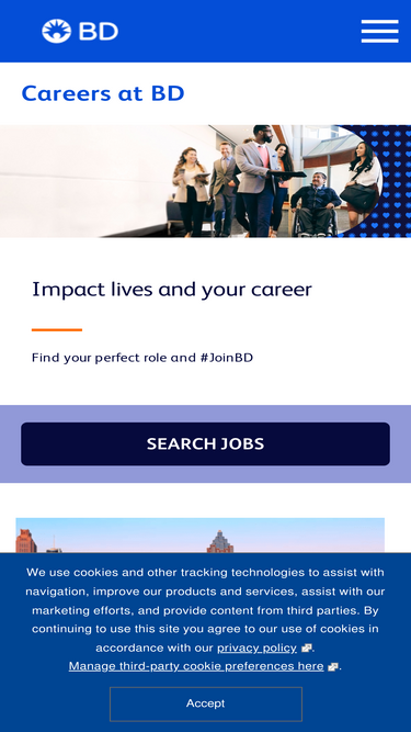 93%We are Becton Dickinson & Company, a global medical company. And this is our careers website for Europe, Middle East and Africa. Discover the career for you.