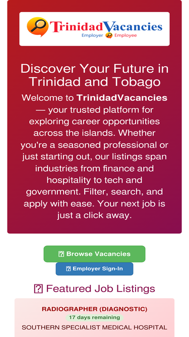 72%the most convenient and comprehensive vacancy listing for trinidad and tobago.