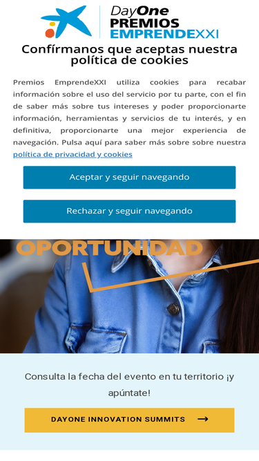 32%Consulta la fecha del evento en tu territorio ¡y apúntate! DAYONE INNOVATION SUMMITS ¿Qué son los Premios EmprendeXXI? Son el impulso que tu empresa necesita para alcanzar nuevas metas. Queremos premiar el talento y la capacidad de innovación para transformar nuestro entorno. Buscamos start-ups con potencial infinito, como la tuya, que quieran crecer y generar un impacto […]