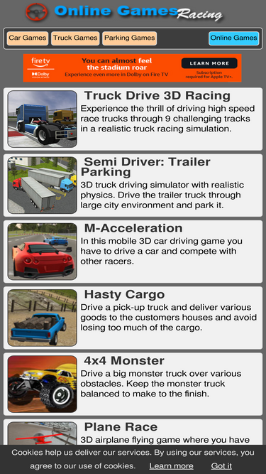 87%play free online car racing games, dirt bike racing games, monster truck games, driving games, mini rally and formula games.