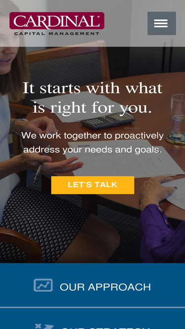 100%At Cardinal Capital, we’re committed to always acting in our clients’ best interests. Not only is it a promise, it’s a legal, fiduciary responsibility. That means no selling, no commissions. Just solid, long-term financial advice.