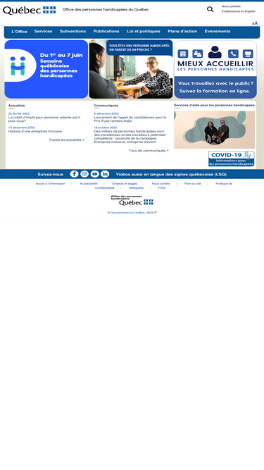 l’office des personnes handicapées du québec est un organisme gouvernemental qui contribue à accroître la participation sociale des personnes handicapées.