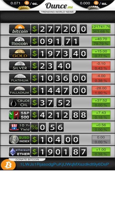 91%ounce.me converts, compares, and charts bitcoin and litecoin to the precious metals, oil, and bond complex. what's an ounce today?