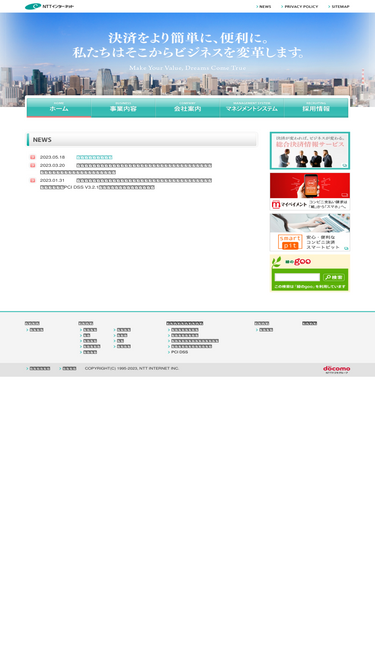 90%nttインターネットは、時代のニーズにマッチした決済情報サービスと、高品質で安心できるシステム開発を通じて、すべてのお客様に喜んでいただけるパートナーとして歩み続けたいと考えております。