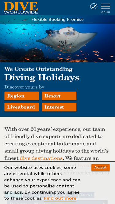 choose from over 160 locations worldwide, hand picked for the best dive experiences. visit us and discover them, or call +44 1962 302 087 (uk).