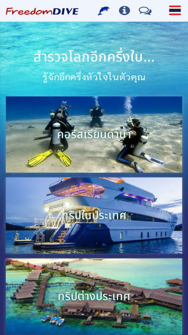95%สอนดำน้ำลึก จัดทริปดำน้ำ ที่สนุกสนานและปลอดภัย ทั้งในและต่างประเทศ จำหน่ายอุปกรณ์ดำน้ำ พร้อมข้อมูลและความรู้ด้านการดำน้ำลึก ให้บริการครบครัน ถูกต้อง อย่างเป็นกันเอง