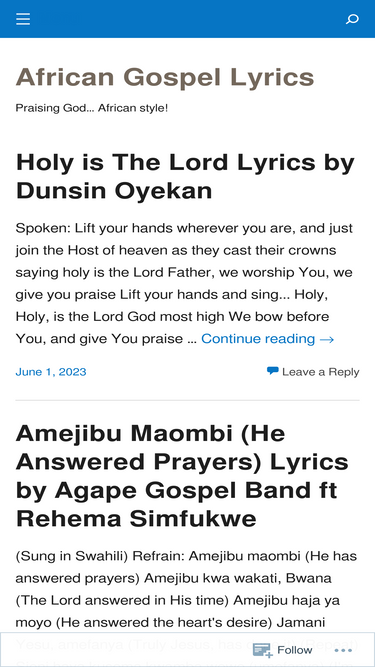 90%A website dedicated to make Christian and Gospel Music Lyrics accessible, through Mobile platforms. Our head office is located in Freetown, Sierra Leone.