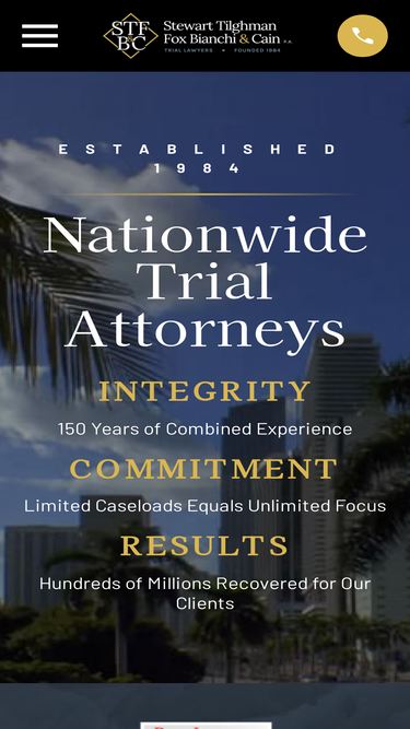 87%Miami injury lawyers at Stewart Tilghman Fox Bianchi & Cain, P.A. have more than 100 years of collective experience.