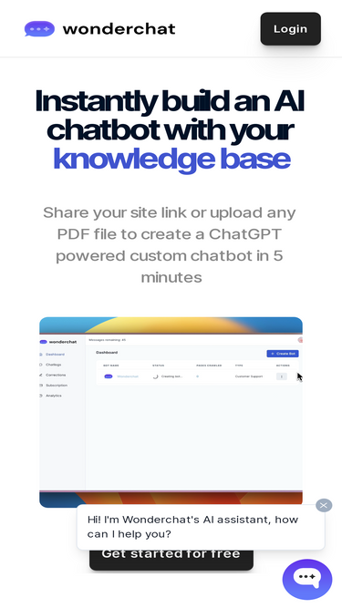 78%Build custom AI chatbots for your website in 1 minute. Self-serve up to 70% customer support queries. Pick your AI model. Train it on your sitelinks and files. Add a Custom ChatGPT to your website. Boost sales. Collect chat analytics. No coding needed.