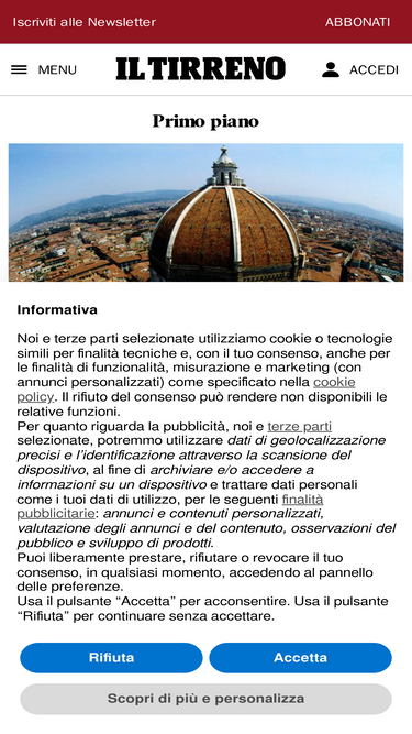100%Il Tirreno è il quotidiano online toscano continuamente aggiornato, con foto e video, su cronaca, politica, sport, cultura, spettacoli ed economia