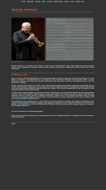 100%Michael Mantler, composer, musician, new jazz, contemporary music. News, biography, recordings, scores, concerts, artists, press, contact information.