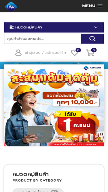 72%เรืองรวินทร์ เมทอลเซ็นเตอร์ จำหน่ายเหล็กครบวงจรมากว่า 50 ปี : ท่อเหลี่ยม ท่อแบน ท่อกลม ท่อประปา API เหล็กฉาก เหล็กแบน เหล็กเส้น ข้ออ้อย ลวด ตะปู ไวร์เมช รางหนา รางพับตัวยู รางฮ่องกง รางบังตา รางล่าง เอชบีม ไอบีม ไวด์แฟรงค์ เหล็กแผ่น ตะแกรงเจาะรู และอื่น ๆ