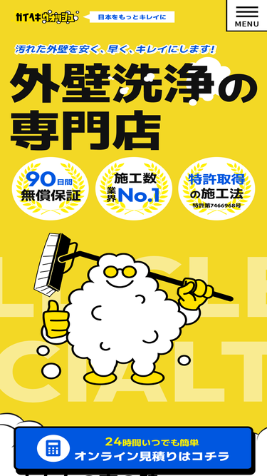 73%外壁洗浄専門店ガイヘキウォッシュは、汚れた外壁を安く、早く、キレイにします!