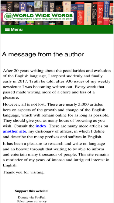 90%Full index to World Wide Words