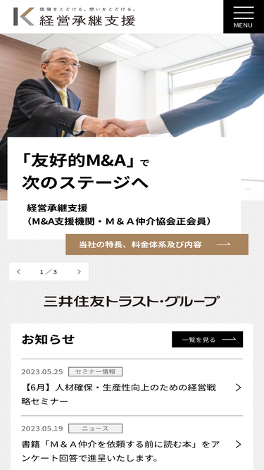 61%M&Aキャピタルパートナーズは、中小企業のM&A・事業承継・会社売却を幅広く支援しています。経営者様の状況に応じた最適な選択肢をご提案し、成約までサポートします。ご相談は無料です。
