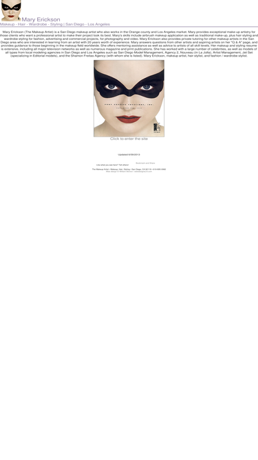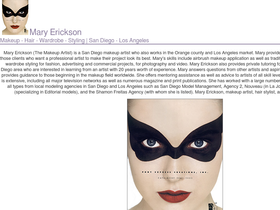 71%Portfolios of Mary Erickson, a San Diego based makeup artist, hair stylist and wardrobe stylist. Features include Q&A questions and answers for photographers, models and make-up artists as well as commercial rates.
