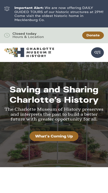 84%the charlotte museum of history interprets and preserves charlotte's unique history.