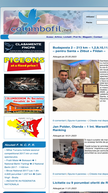 98%porumbei, columbofili, licitatii porumbei, voiajori, produse columbofile