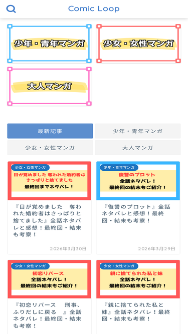 100%漫画の魅力を深掘りするネタバレ特化ブログ。最新作から隠れた名作まで、ジャンル別おすすめやレビューを毎日更新でお届け。初心者にもわかりやすく、読むことで新たなお気に入り作品が見つかる情報満載のブログです。