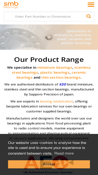 73%Stainless steel miniature bearings with extended inner ring for shaft sizes from 0.0469 inches to 0.3125 inchesThese stainless steel miniature bearing
