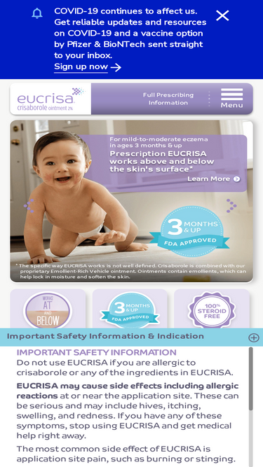 95%See how EUCRISA® works above and below the skin’s surface to treat mild-to-moderate eczema in adults and children ages 3 months and older.