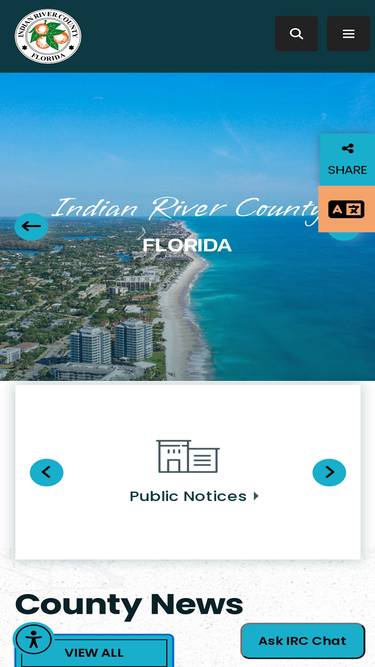 100%Official website of the Indian River County Board of County Commissioners. Access government services, meeting information, County news, and community resources.