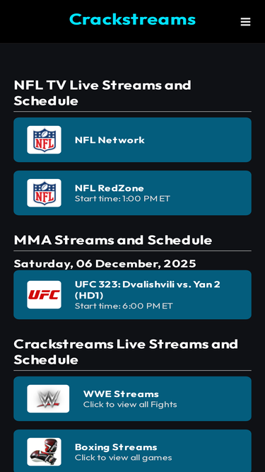 100%Want better UFC streams links? Crackstreams gives you the #1 live streams to watch MMA Streams reddit and UFC Streams HD. We Offer MMA streams as well