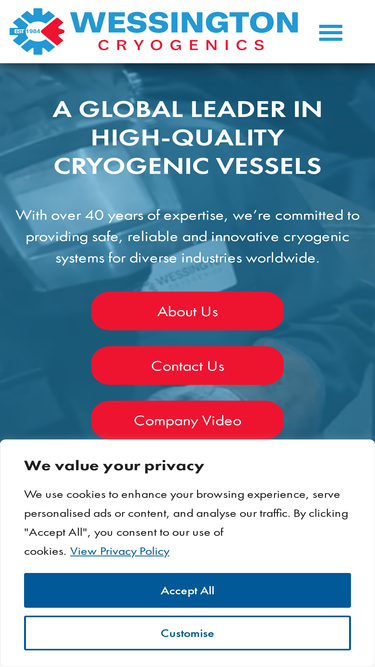65%With almost 40 years of expertise, we’re committed to providing safe, reliable and innovative cryogenic vessels and dewars for diverse industries worldwide.