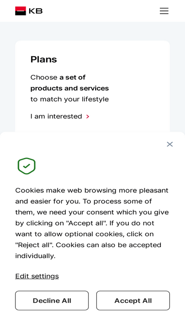 Komerční banka poskytuje finanční produkty a služby pro občany, podnikatele, malé i velké podniky a státní správu. Bankovní účty, půjčky, hypotéky, spoření, investice, pojištění. Široká síť poboček a bankomatů KB.