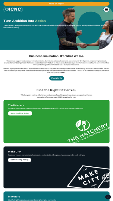 84%Learn about ICNC's mission to drive Chicago's economy. We offer business incubation (Make City, The Hatchery), workforce training, financial aid, and strategic growth services.