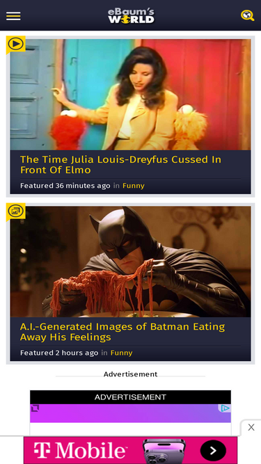 100%a nonchalant collection of funny pictures, slightly-dank memes, and somewhat crazy videos that ebaum's world users uploaded from all over the internet from dashcams, the deep web, security cameras and sometimes right off youtube or even their own phones.