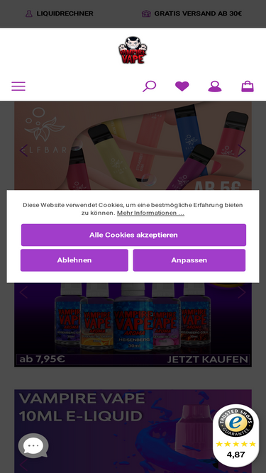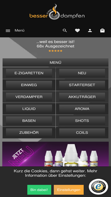 97%inTaste - Deutschlands Dampfer Shop Nummer 1! Riesige Auswahl an E-Zigaretten, Liquids und Aromen zum Tiefstpreis ✔ Top Service ✔ 24h Versand ✔