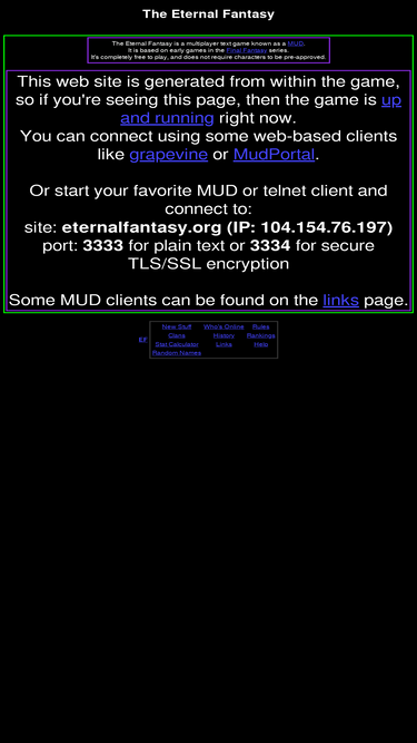 100%the eternal fantasy is a mud based on the final fantasy series of video games.