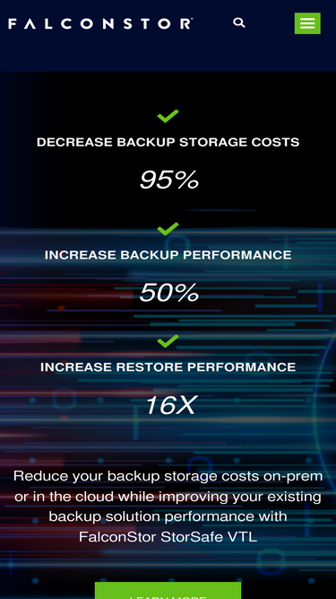 90%Reduce your backup storage costs on-prem or in the cloud while improving your existing backup solution performance with FalconStor StorSafe.
