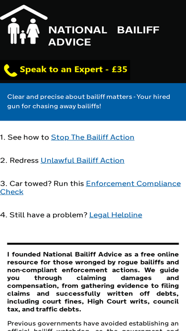 72%Worried about the prospect of bailiffs, or are already feeling intimidated by bailiffs, take action via an IVA. Contact Bailiff Helpline today