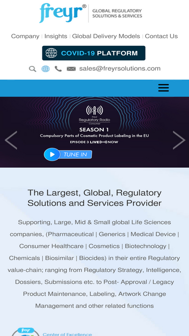 freyr is a global regulatory solutions and services company, focusing on the entire regulatory value-chain ranging from regulatory strategy, intelligence, dossiers, submissions to post approval maintenance, labeling, artwork change management for pharmaceutical, generics, medical device, biotechnology, biosimilar, consumer healthcare, cosmetic companies across the globe.