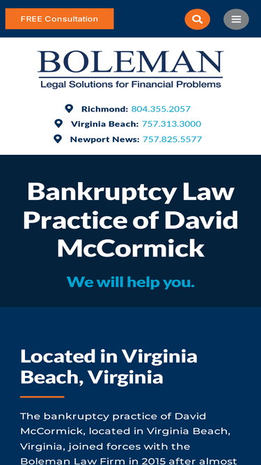 Virginia’s leading personal bankruptcy law firm serving Richmond and Tidewater Virginia with offices in Richmond, Newport News & Virginia Beach. Chapter 7 & 13.