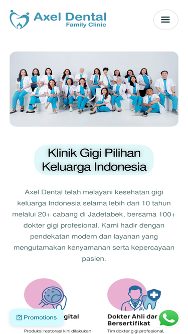 64%Perawatan gigi keluarga di Axel Dental, 20+ cabang di Jadetabek, 100+ dokter profesional, pengalaman 10+ tahun, layanan modern untuk senyum sehat.