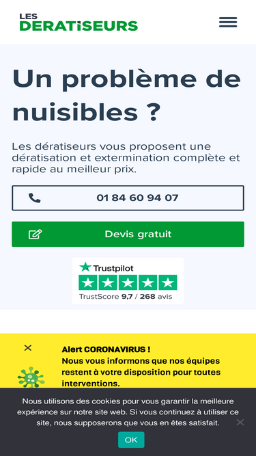 27%Professionnel de la dératisation désinsectisation désinfection agréé pour vous débarrasser des nuisibles. Devis gratuit, intervention rapide