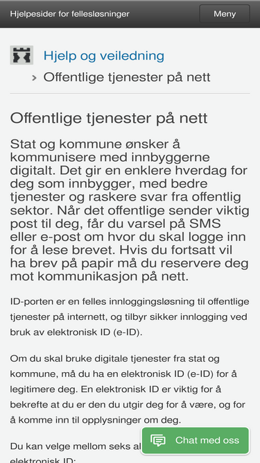 92%Her finner du informasjon til deg som skal bruke ID-porten, Kontakt- og reservasjonsregisteret, digital postkasse, eSignering eller eInnsyn som privatperson.