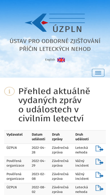 přehled aktuálně vydaných zpráv o událostech v civilním letectví