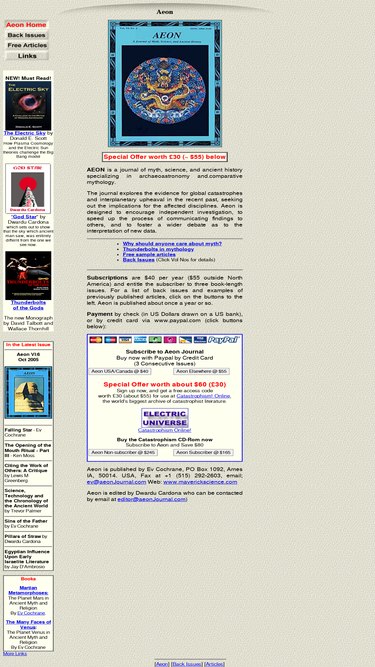 78%aeon explores the evidence for global catastrophes and interplanetary upheaval in the recent past, seeking out the implications for the affected disciplines. the symposium is designed to encourage independent investigation, to speed up the process of communicating findings to others, and to foster a wider debate as to the interpretation of new data.