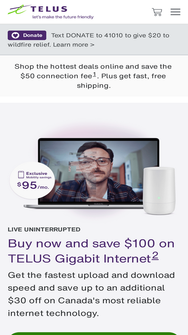 82%By choosing TELUS you get access to amazing plans, phones and high-speed internet on Canada's most-awarded network, and help connect Canadians in need.