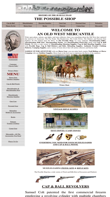 74%muzzleload rifles & pistols, cap & ball pistols, muzzleloading supplies, horse gear and outfitter supply.