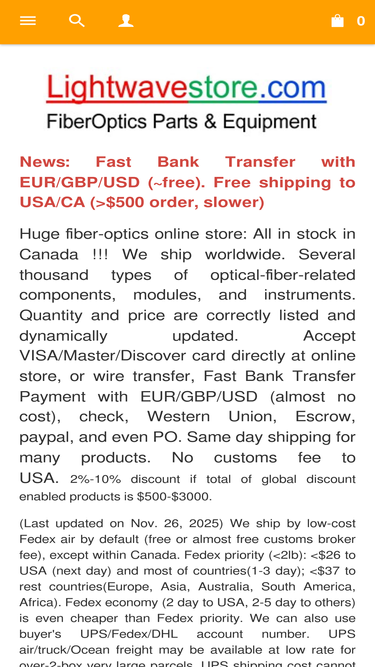 one-stop fiber optic superstore. ship worldwide. online purchase and instant check out.