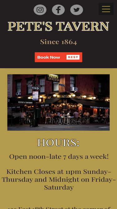 92%Enjoy a classic NYC dining experience at Pete's Tavern with our all-day menu, just steps from Union Square.