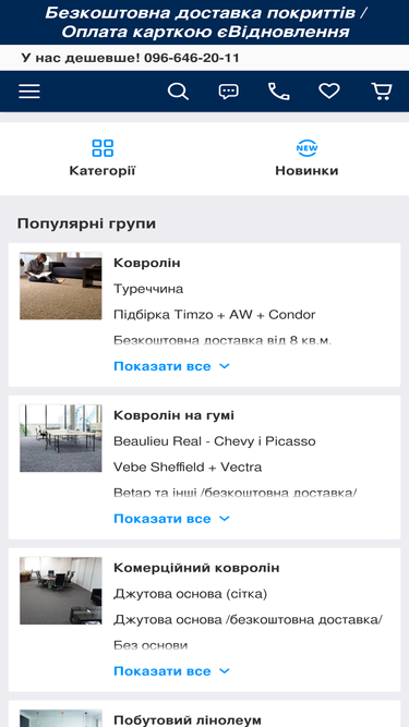 100%Напольные покрытия с доставкой по Украине ✓Быстрая доставка ✓Каталог с фото и ценами ✓Низкие цены ✓Большой ассортимент ✓Линолеум ✓Ламинат ✓Ковролин...
