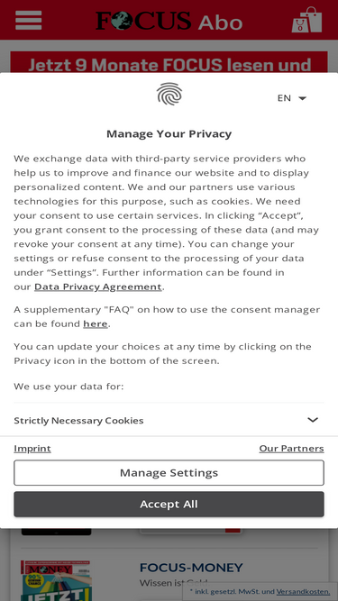 76%Mit einem FOCUS MONEY Abo bleiben Sie jede Woche bestens informiert! Das Magazin gehört zu den führenden Zeitschriften für Finanzen in Deutschland und bietet fundierte Analysen, Berichte und Tipps zu Aktien, Börse, Geldanlage, Steuern und Wirtschaft – ideal für Einsteiger und erfahrene Anleger. Ihre Vorteile mit einem FOCUS MONEY-Abo: Fundierte Wirtschaftsanalysen: Verstehen Sie die Hintergründe der Finanzwelt – von Börsenentwicklungen über Konjunkturtrends bis zu Unternehmensstrategien. Klar, präzise und faktenbasiert aufbereitet. Exklusive Investment-Tipps: Profitieren Sie von unabhängigen Analysen, Experteninterviews und praxisnahen Empfehlungen zu Geldanlage, Steuern und Vorsorge – nur in FOCUS MONEY. FOCUS+ inklusive: Mit Ihrem Zugang lesen Sie alle digitalen Inhalte des FOCUS MONEY jederzeit und überall – auf Smartphone, Tablet oder PC. Attraktive Abo-Prämien & Leser-Vorteile: Sichern Sie sich regelmäßig exklusive Prämien und Sonderaktionen beim Abschluss oder Weiterempfehlen Ihres Abos. Finanz-Newsletter der Redaktion: Erhalten Sie aktuelle Marktanalysen, Hintergrundberichte und wertvolle Anlagetipps direkt in Ihr E-Mail-Postfach. FOCUS MONEY Magazin – Perfekt fürs Wochenende Die neue FOCUS MONEY Ausgabe erscheint jeden Freitag – ideal für einen informierten Start ins Wochenende. Bleiben Sie jederzeit umfassend informiert – sowohl gedruckt als auch digital. Mit unseren FOCUS MONEY Abo-Angeboten genießen Sie maximale Flexibilität: Lesegenuss am Wochenende direkt zu Ihnen nach Hause Inklusive: Zugriff auf alle Inhalte von FOCUS und FOCUS MONEY Aktuell: Inhalte jederzeit digital abrufbar in der FOCUS+ App und auf focusplus.de Exklusive Newsletter mit aktuellen Nachrichten und Analysen aus der Redaktion. Häufig gestellte Fragen: Frage: Wann erhalte ich das erste Heft? Antwort: Im Bestellvorgang können Sie den Lieferbeginn selbst bestimmen. Der frühestmögliche Termin wird angezeigt. Den genauen Starttermin für Ihr Abo können Sie