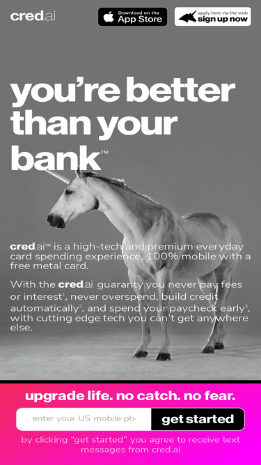 92%cred.ai™ is a high-tech and premium everyday card spending experience, 100% mobile with a free metal card. With the cred.ai guaranty you never pay fees or interest, never overspend, build credit automatically, and spend your paycheck early, with cutting edge tech you can’t get anywhere else.