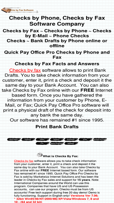 100%checks by phone software company, checks by fax. phone checks checks by phone a check printing software is a full featured program that prints checks that you receive or send by fax, phone or e-mail. checks by fax also prints business cards.